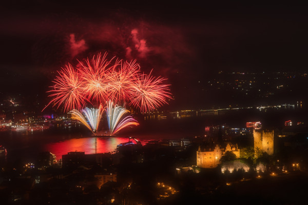 Since 1977, our traditional fireworks event in the Upper Middle Rhine Valley near Rüdesheim has been thrilling guests from all over the world. Be there live when the sky above the Rhine is transformed into a colorful sea of colors! On board the MS Eureka, you can enjoy the spectacle in a convoy with the best view of the fireworks.