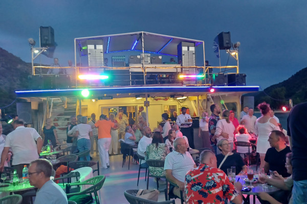 Sparkling wine reception on board Summer buffet (see below)Beverage package until midnight (beer, wine, soft drinks, Ramazotti) DJ and dancing on the sun deck.