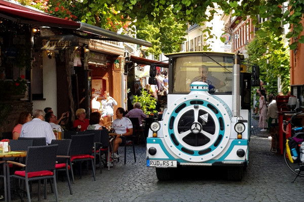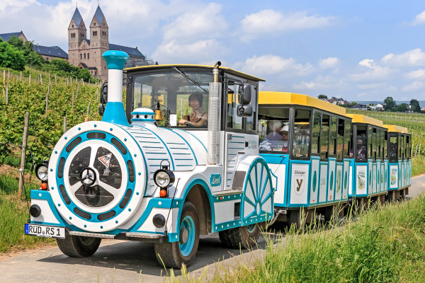 April to October During the 30-minute tour through the alleyways and vineyards of Rüdesheim, you will learn lots of interesting facts about the sights and winegrowing.